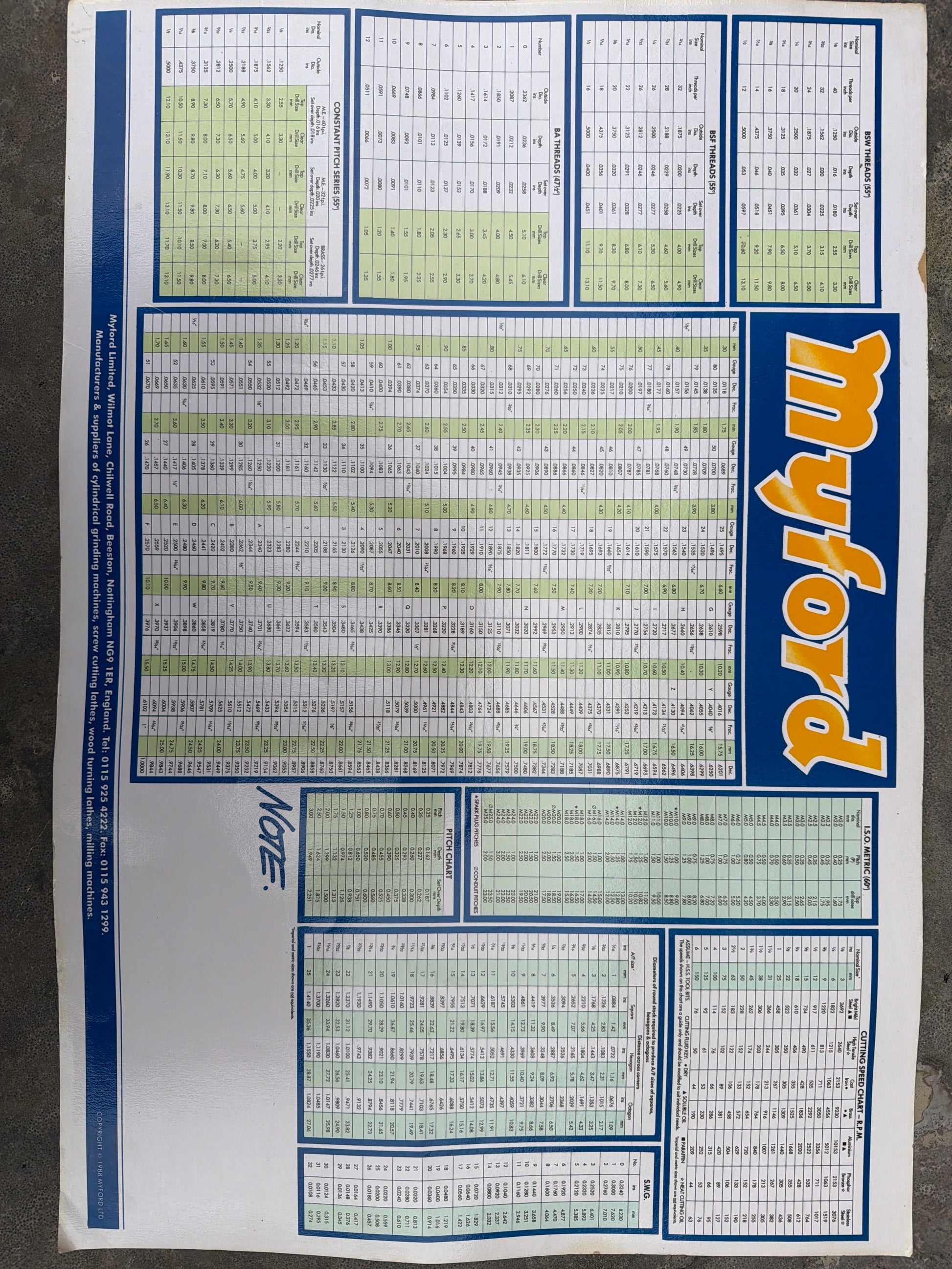 Originele Myford draadtabel